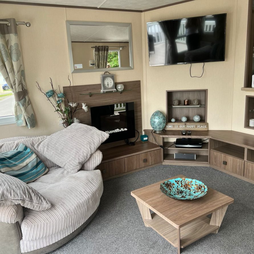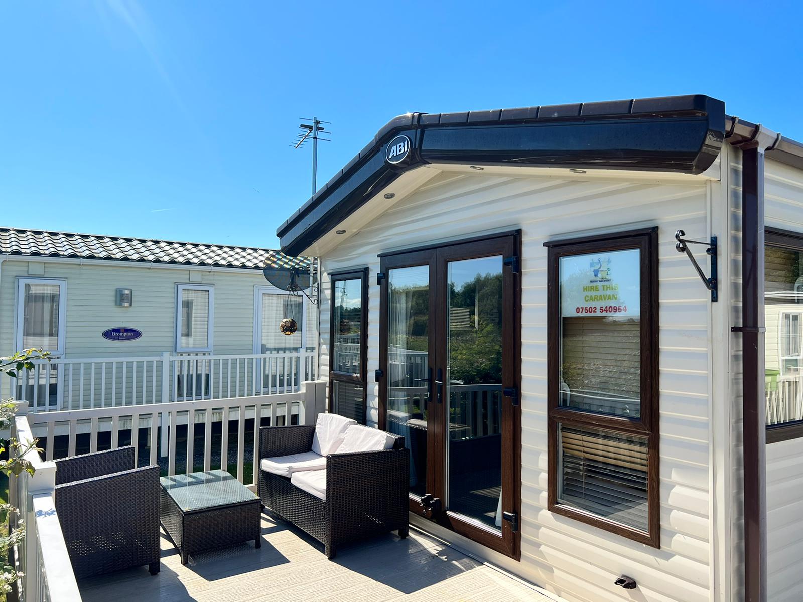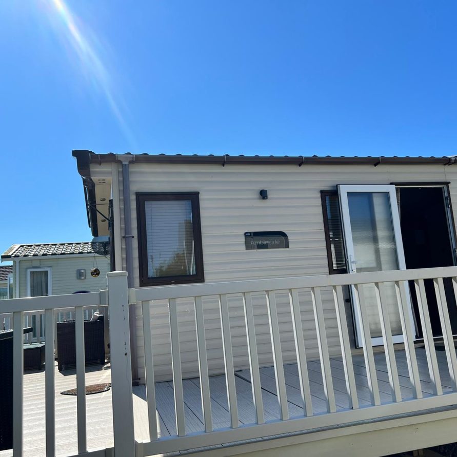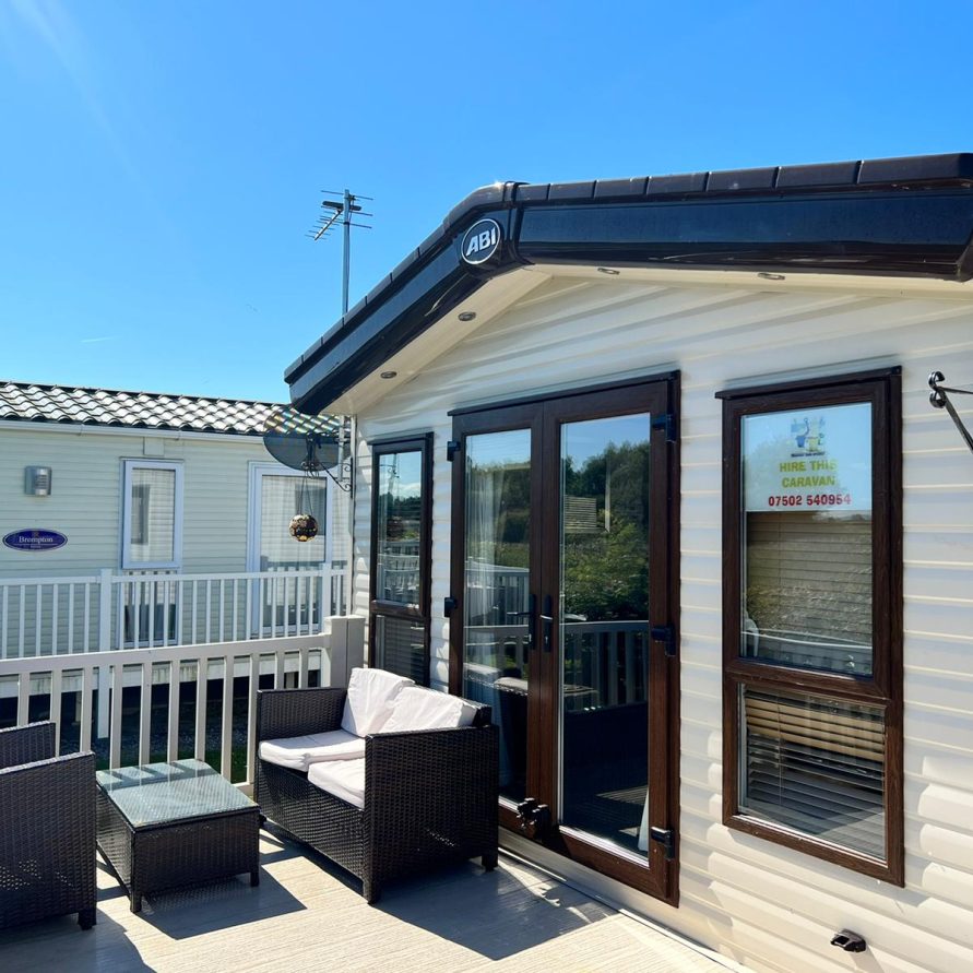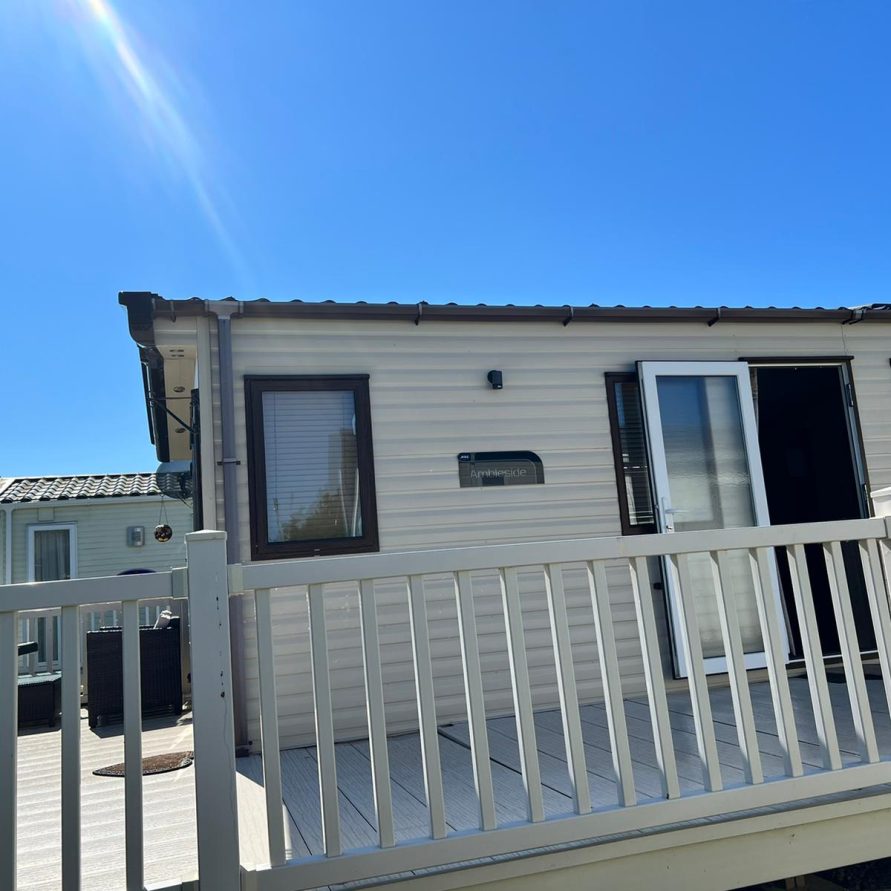 Experience ultimate comfort at the Ambleside caravan, located on a premier Regency pitch. This spacious 2-bedroom holiday home, perfect for up to 4 guests, features a wrap-around decking area complete with outdoor furniture for relaxing in the fresh air.
