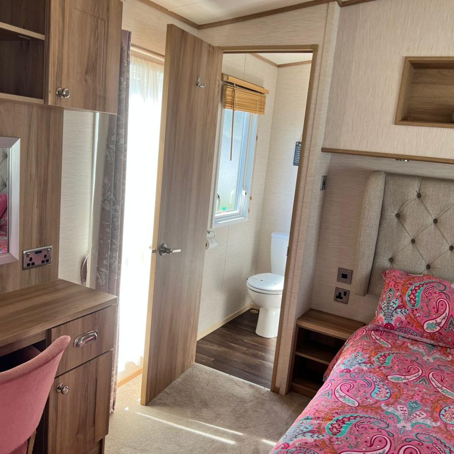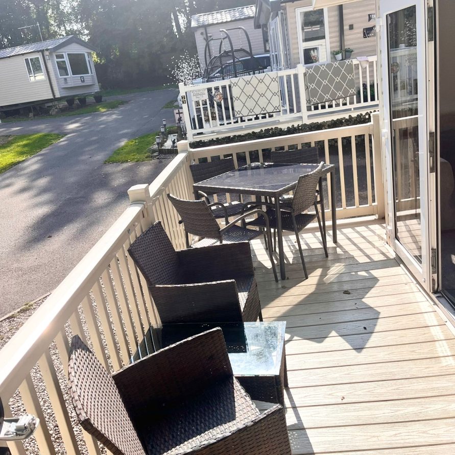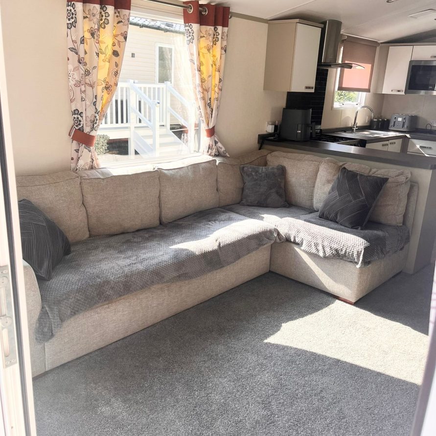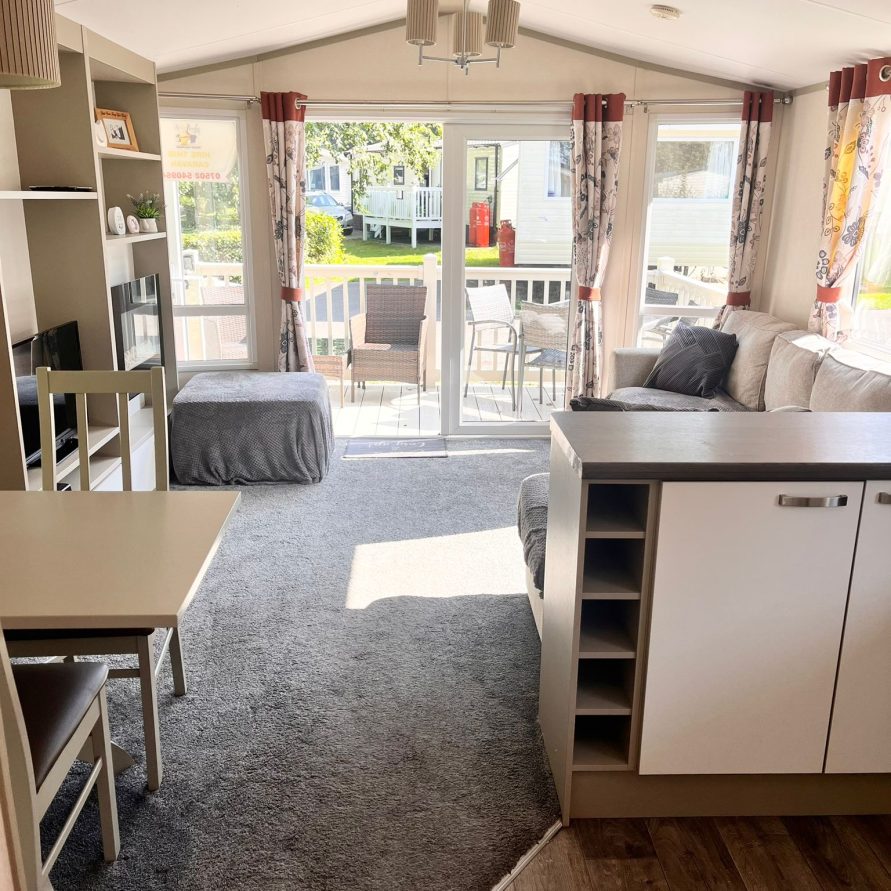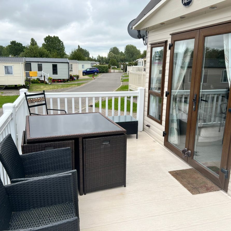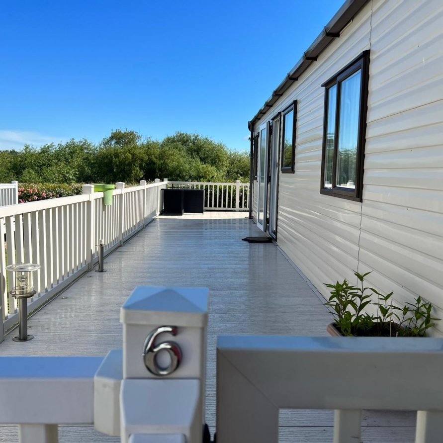 The Atlas Kensington on the Windsor pitch is a spacious 3-bedroom caravan that comfortably sleeps up to 6 guests. With wrap-around decking and outdoor furniture, it’s perfect for relaxing outside. Inside, you’ll find a fully equipped kitchen, modern bathrooms, and an ensuite for added privacy.