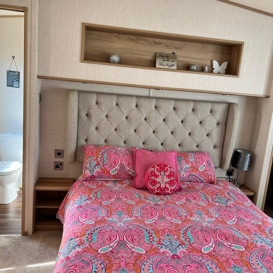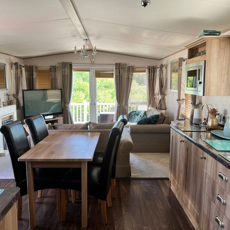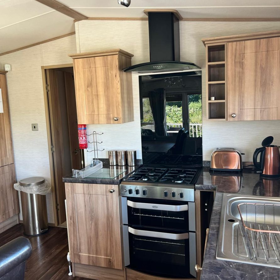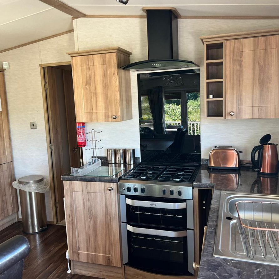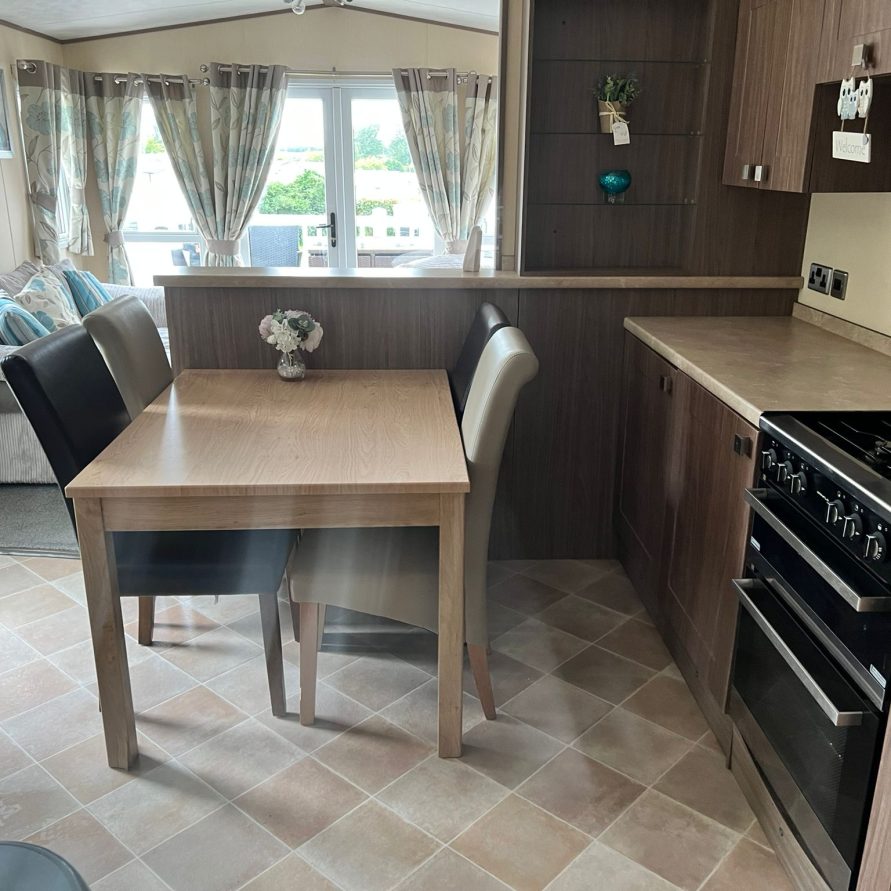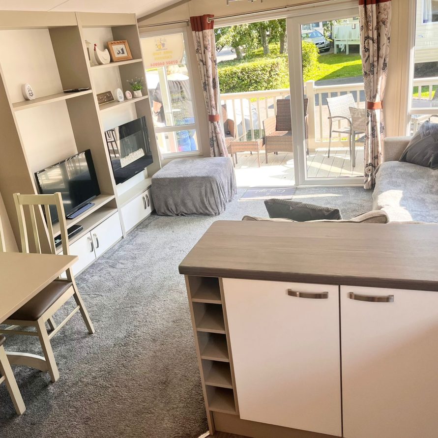 The Atlas Kensington on the Windsor pitch is a spacious 3-bedroom caravan that comfortably sleeps up to 6 guests. With wrap-around decking and outdoor furniture, it’s perfect for relaxing outside. Inside, you’ll find a fully equipped kitchen, modern bathrooms, and an ensuite for added privacy.