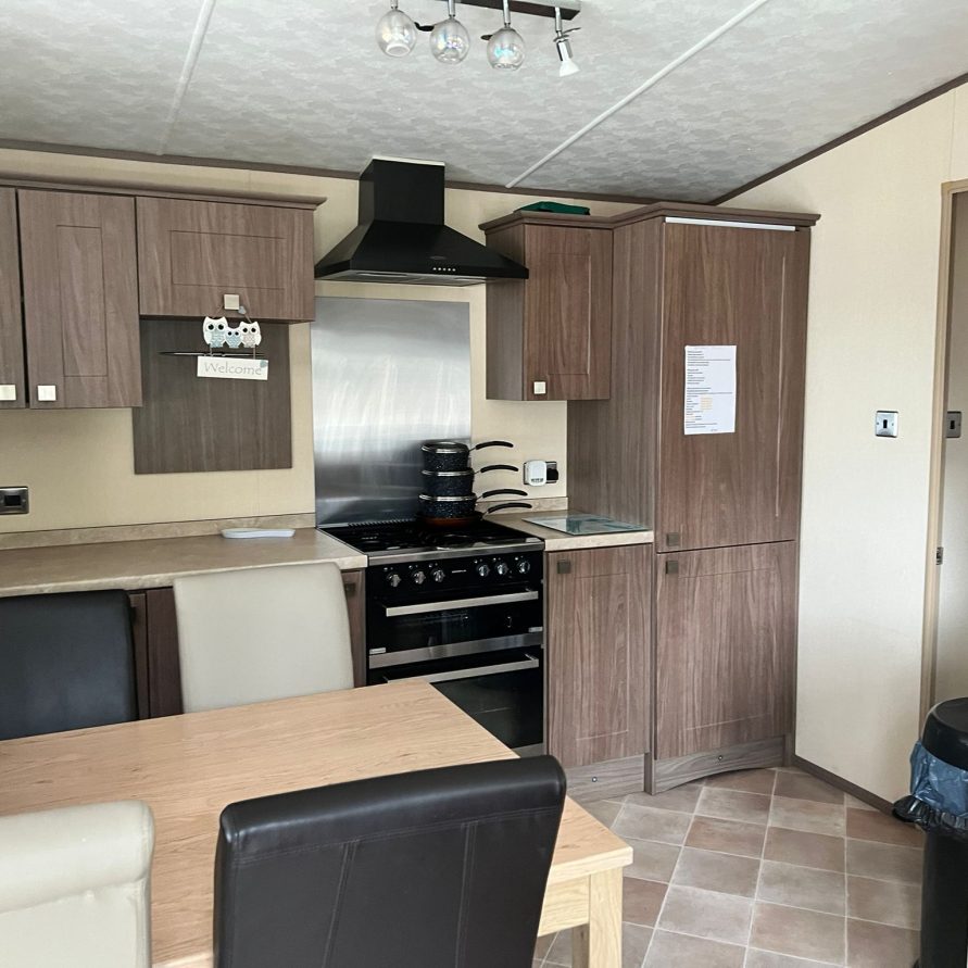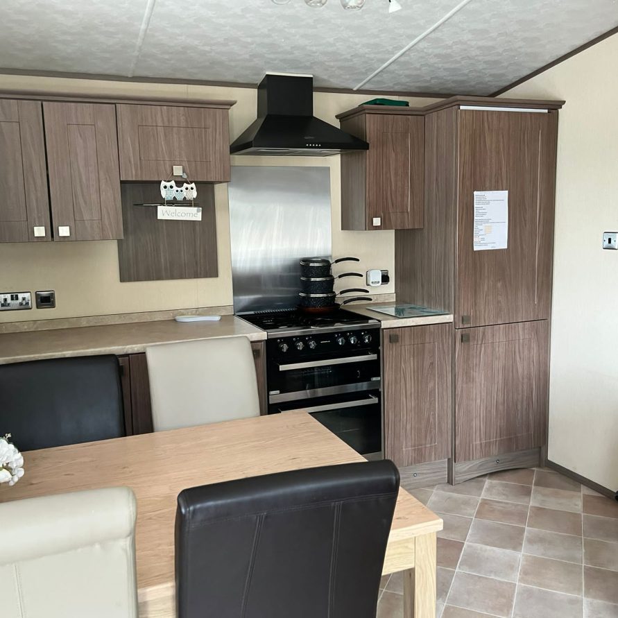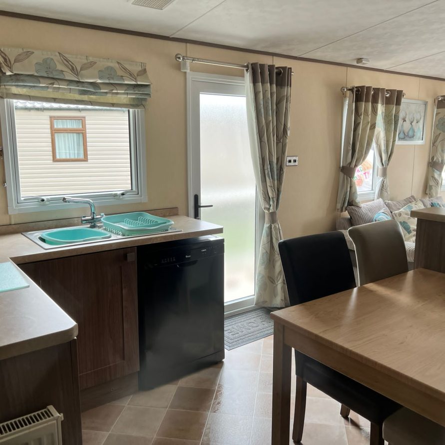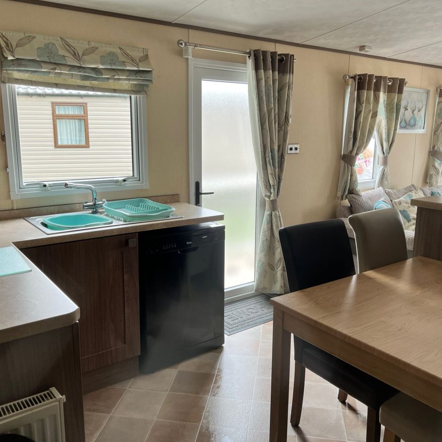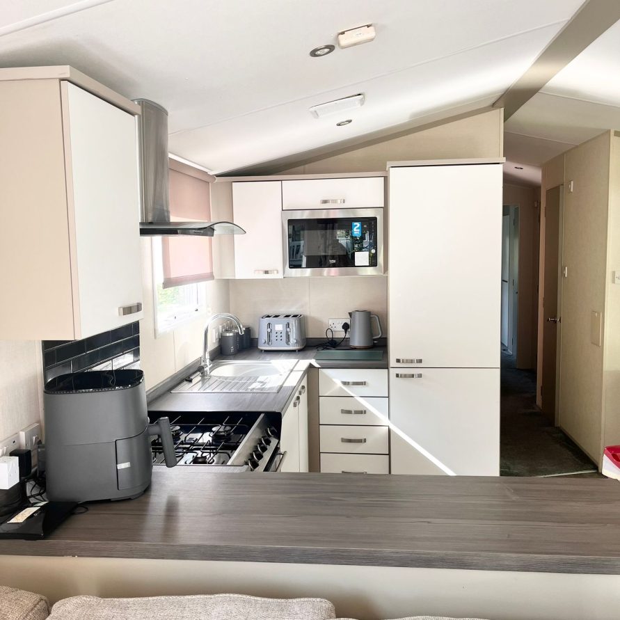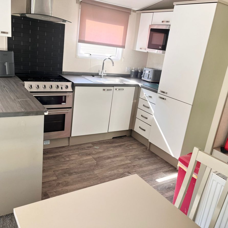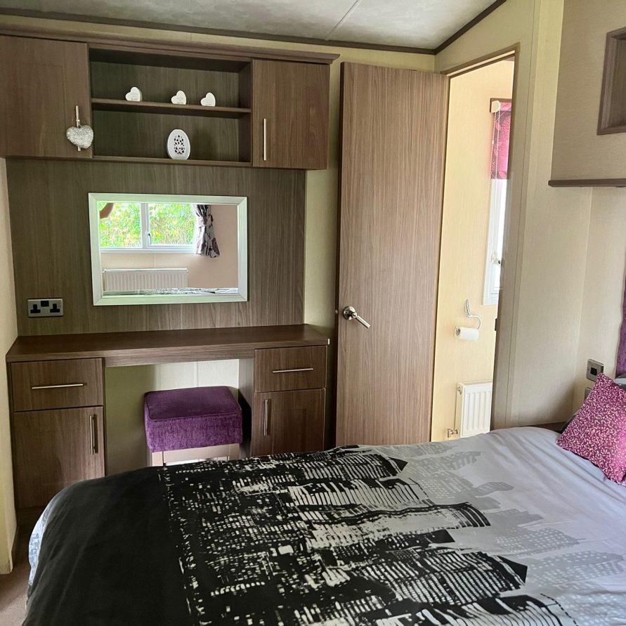The Atlas Kensington on the Windsor pitch is a spacious 3-bedroom caravan that comfortably sleeps up to 6 guests. With wrap-around decking and outdoor furniture, it’s perfect for relaxing outside. Inside, you’ll find a fully equipped kitchen, modern bathrooms, and an ensuite for added privacy.