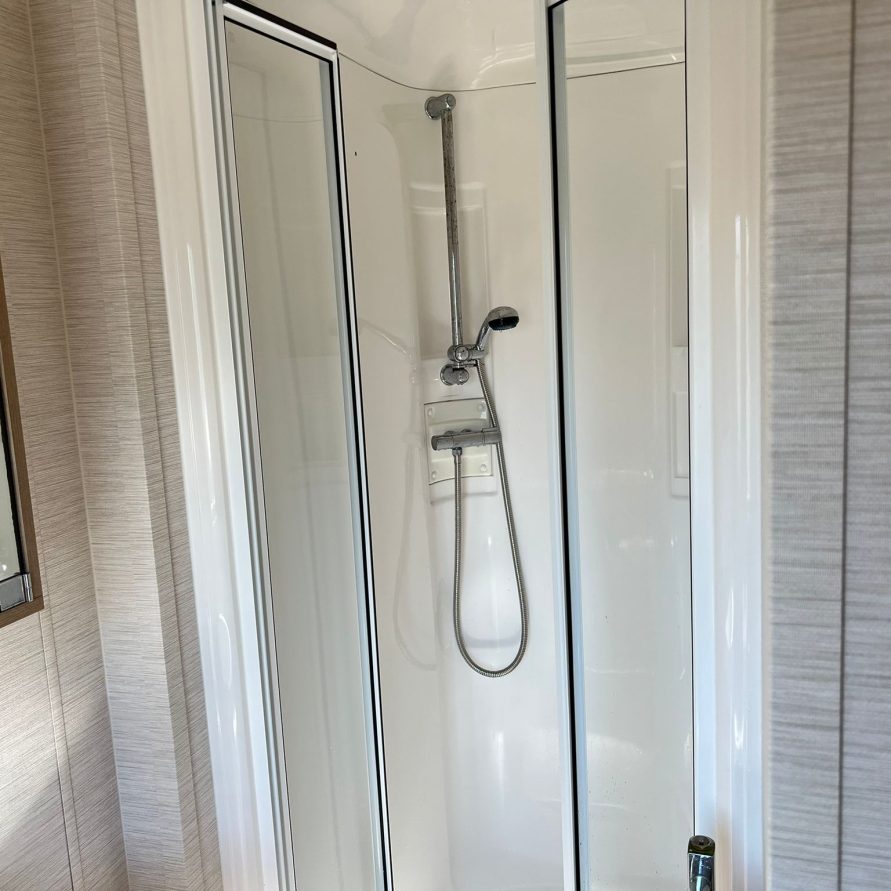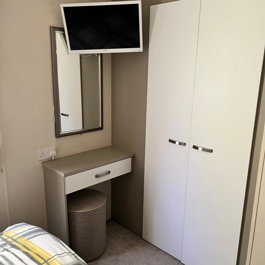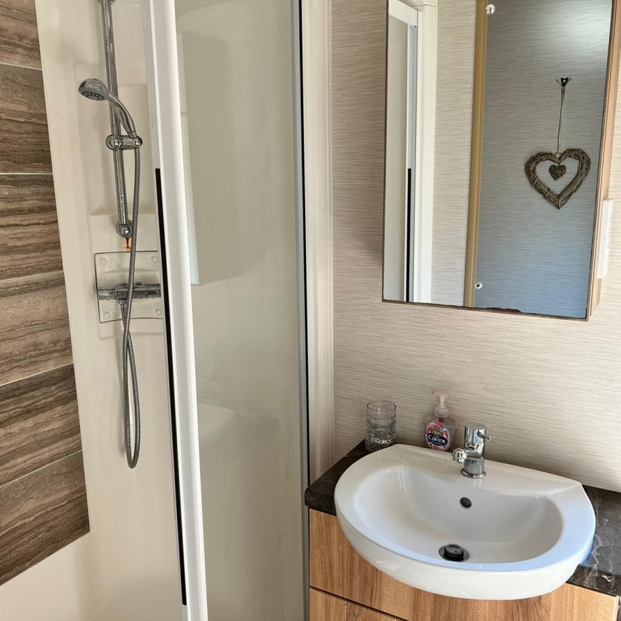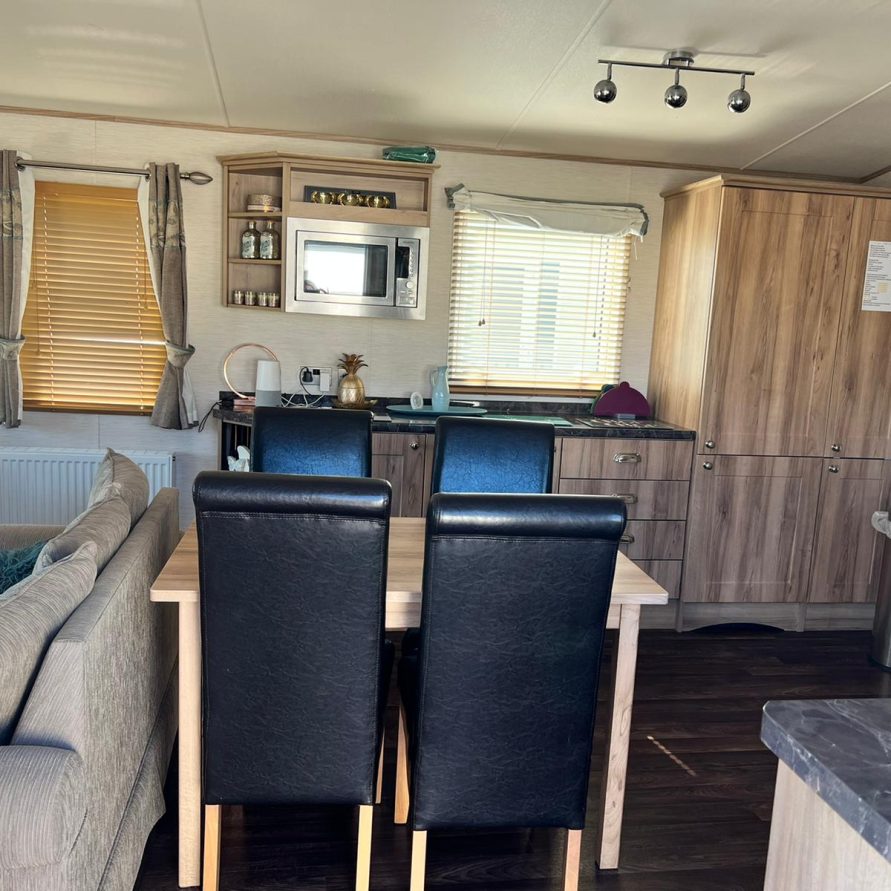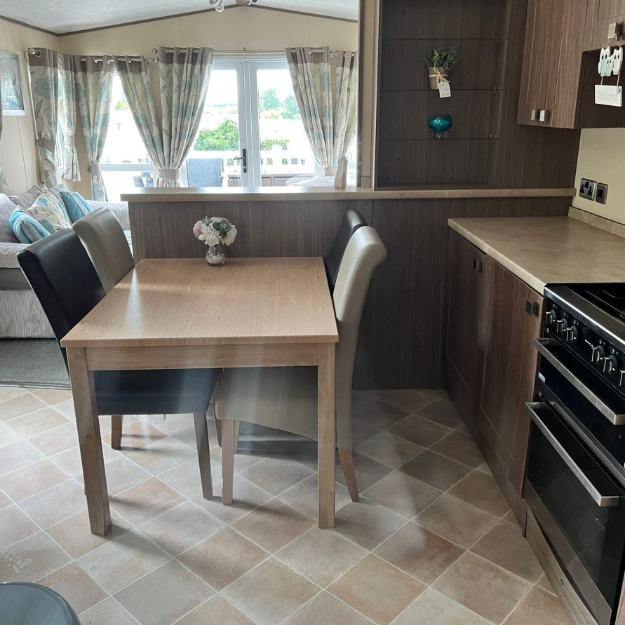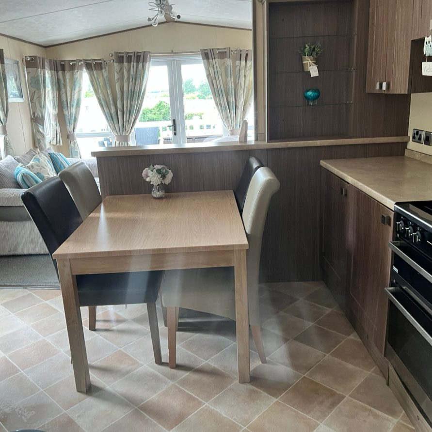The Atlas Kensington on the Windsor pitch is a spacious 3-bedroom caravan that comfortably sleeps up to 6 guests. With wrap-around decking and outdoor furniture, it’s perfect for relaxing outside. Inside, you’ll find a fully equipped kitchen, modern bathrooms, and an ensuite for added privacy.